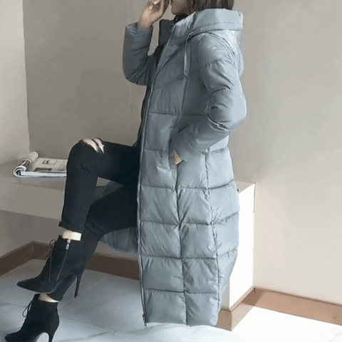 Objevte náš dlouhý zimní kabát Gisèle pro ženy: váš ultimátní společník pro teplo, styl a pohodlí v chladném období.