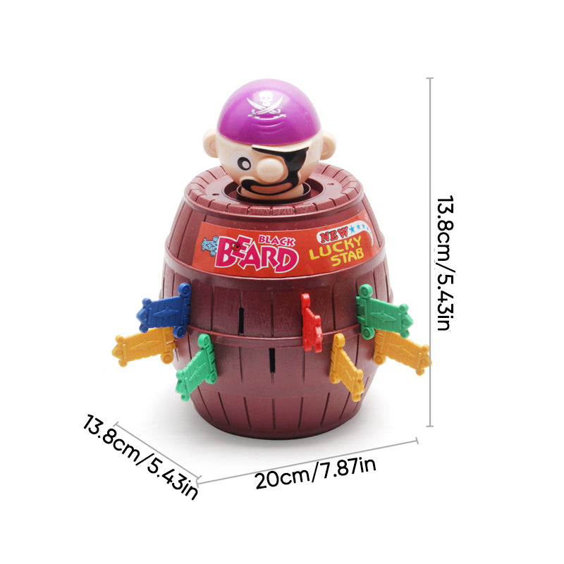 ✔ Lucky Stab Game Set: Obsahuje barevné meče, pomocí kterých hráči střídavě vybírají místo v sudu. Ale pozor! Pokud zvolíte špatně, pirát vyskočí a hráč prohrává!