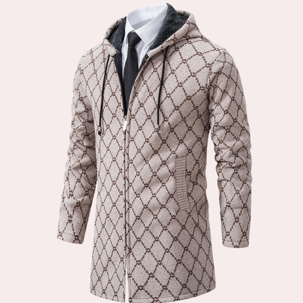 Objevte náš Thanasis dlouhý kardigan s kapucí pro muže, nezbytnost pro večer a noc.