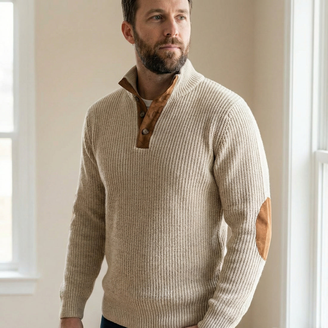 Herre Outdoor Pullover – Struktureret Strik, Robust Materiale & Behageligt Snit
