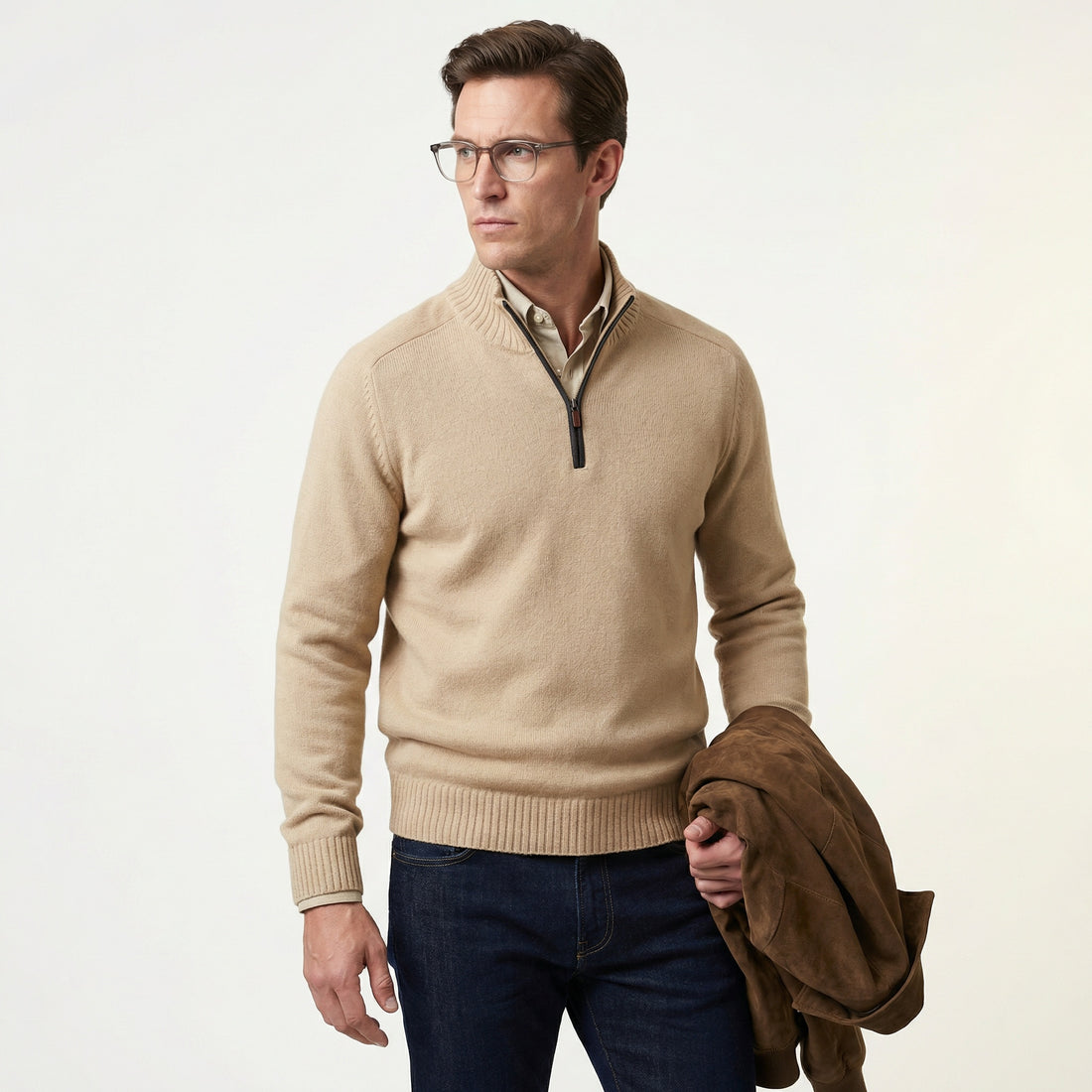 Herretrøje med lynlås – kashmir, ståkrave og blød bæreoplevelse