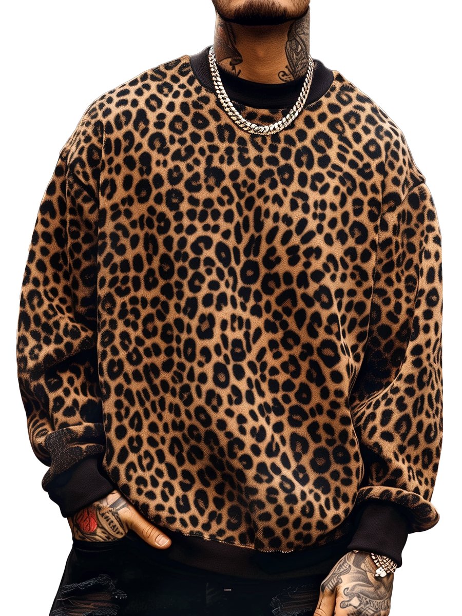 Herre sweater med leopardmønster, rund halsudskæring og lange ærmer