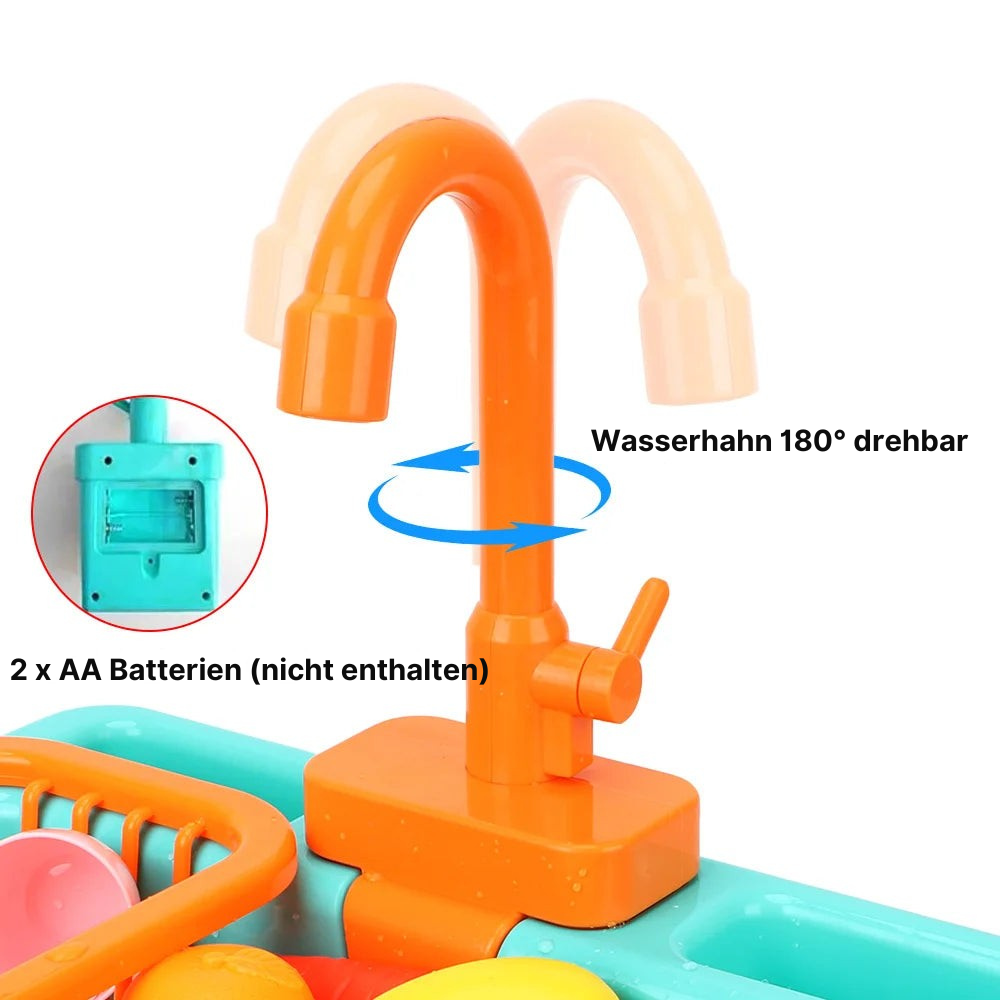 Realistisk opvaskoplevelse – Efterlignet vask med stænkbeskyttelse & afdrypningsplads gør husarbejde til leg.