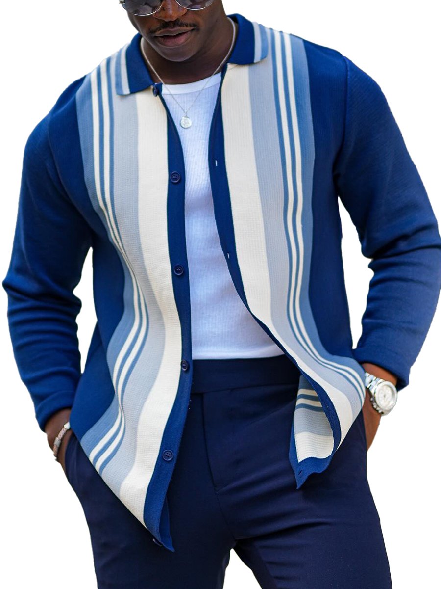 Cardigan rayé pour homme avec revers et patte de boutonnage - Stylé & Décontracté