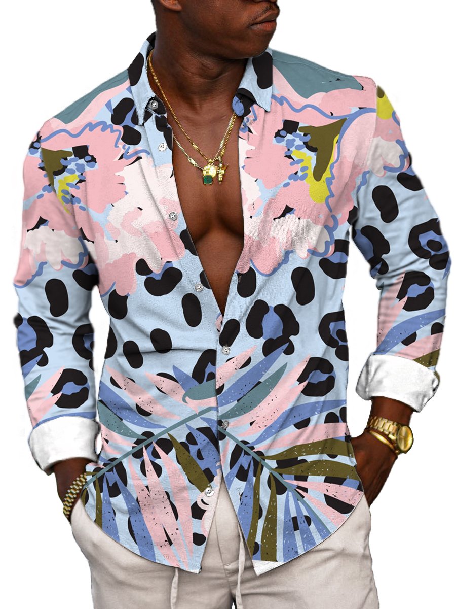 Chemise décontractée à manches longues avec imprimé léopard et floral - élégante & unique