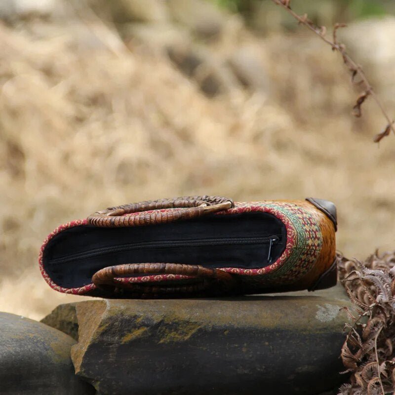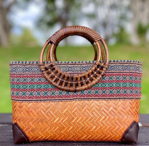 Fabriqué en bambou de haute qualité, le sac Devako Sakura se distingue par sa structure tissée unique.