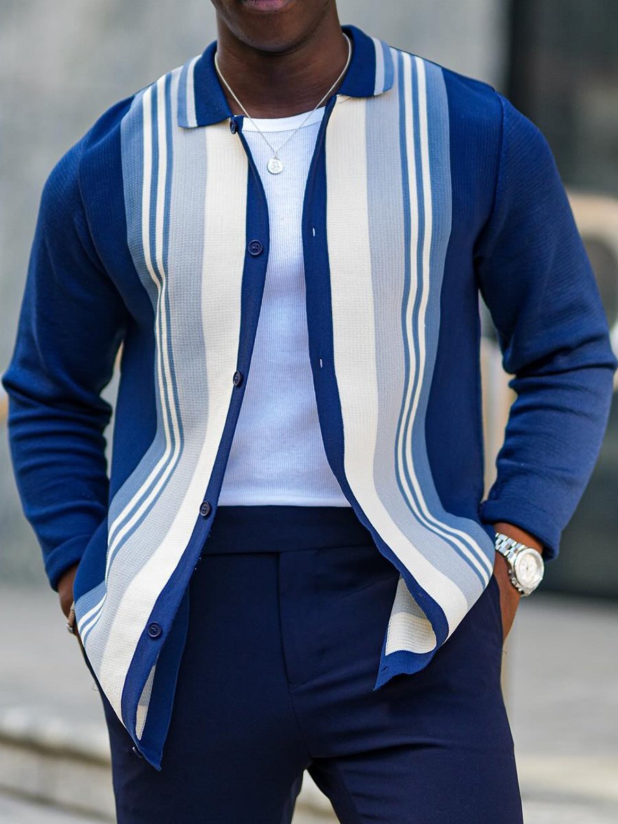 Cardigan rayé pour homme avec revers et patte de boutonnage - Stylé & Décontracté