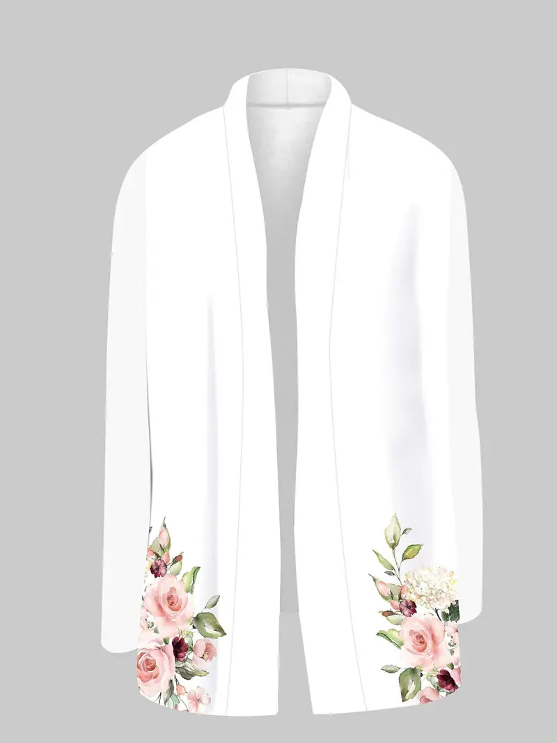 Le bel imprimé floral apporte une touche de couleur et de gaieté à votre tenue, tandis que le tissu doux et le col châle élégant offrent un look raffiné.