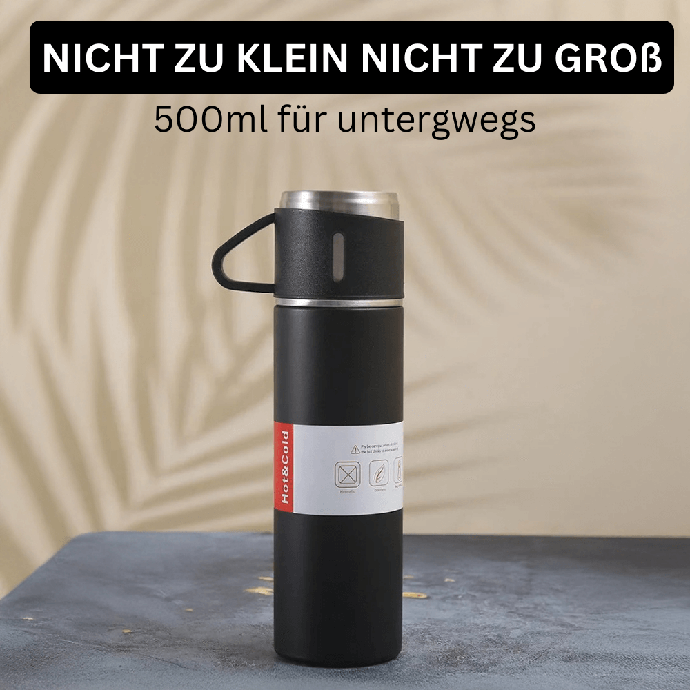 Con 500 ml, la borraccia termica in acciaio inox a isolamento sottovuoto offre il volume giusto: abbastanza grande per il tuo caffè, tè o acqua ghiacciata e abbastanza compatta da entrare in ogni zaino o borsa.