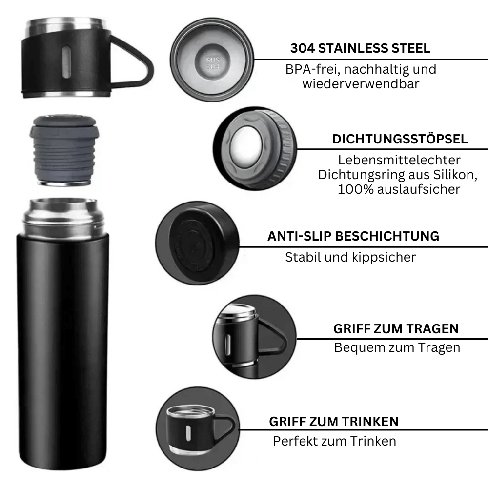 Che sia caffè fumante sulla strada per l'ufficio, tè caldo in montagna o acqua ghiacciata durante l'escursione – la borraccia termica in acciaio inox a isolamento sottovuoto è la tua compagna perfetta. Mantiene le bevande calde fino a 12 ore e fredde fino a 24 ore – sia nella vita quotidiana che nella tua prossima avventura.