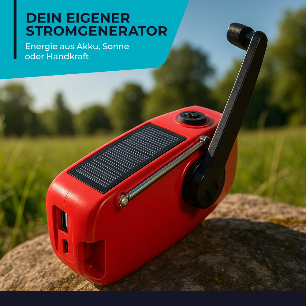 Ob Stromausfall, Krisenfall oder einfach nur beim Camping – der Dynox ist dein persönlicher Stromerzeuger und Überlebenshelfer. Er funktioniert komplett ohne Stromanschluss und liefert dir genau das, was du im Ernstfall brauchst: