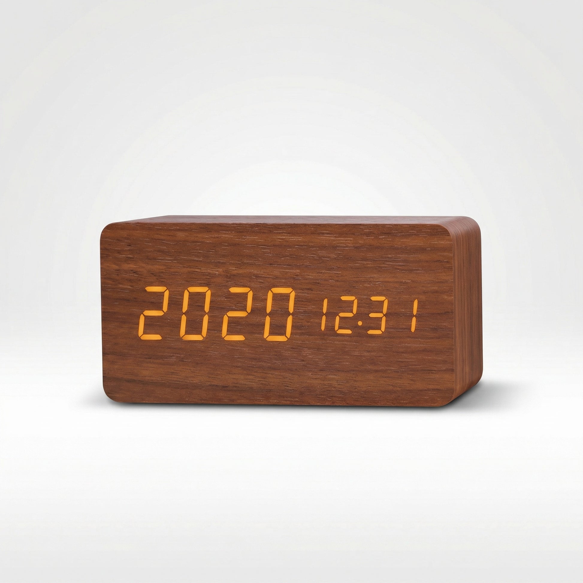LED Holz Uhr – Minimalistische Tischuhr mit Geräuschaktivierung