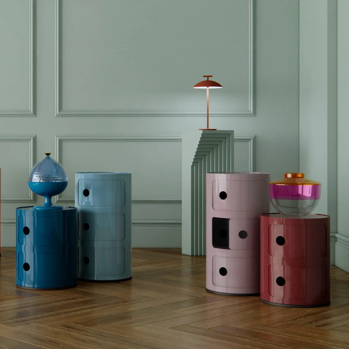 Bringen Sie ikonisches Design und Funktionalität in Ihr Zuhause – mit dem Moduro Componibili Rundschrank.