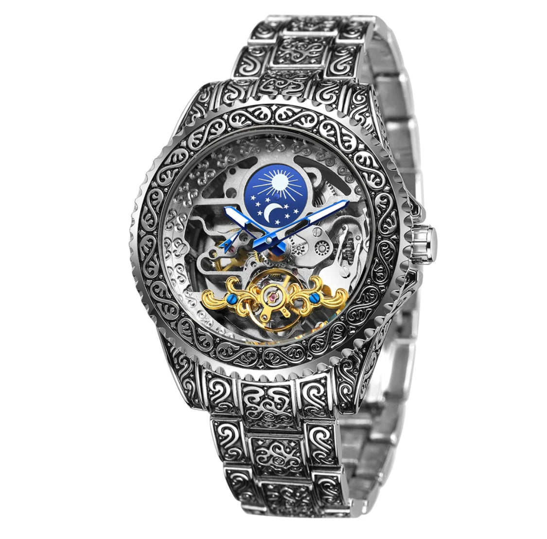 Hodinky sú vodotesné do 30 metrov a vybavené automatickým strojčekom, ktorý zaručuje presnosť a spoľahlivosť. Tento nastaviteľný časomer z nerezovej ocele spája štýl s funkčnosťou.