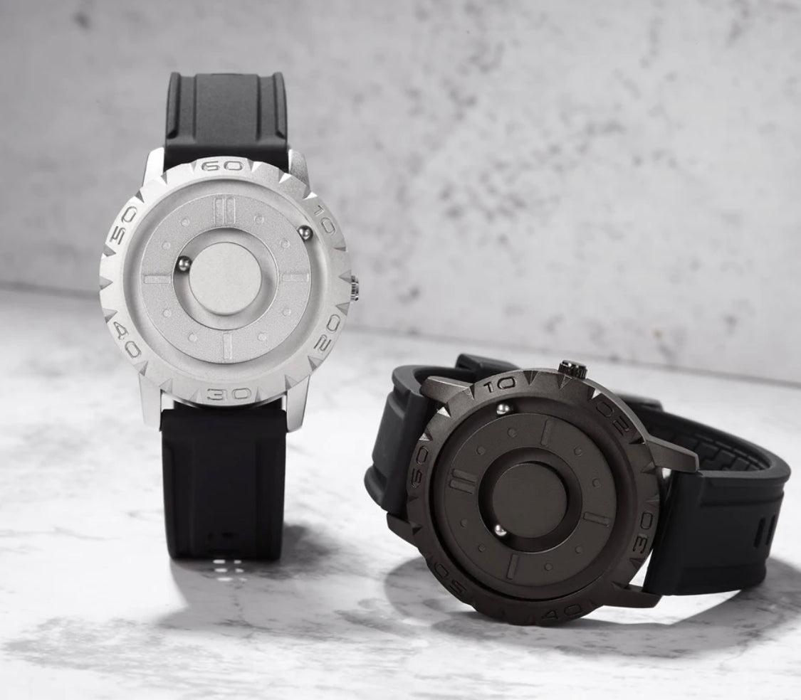 Tento hodinky ste pravdepodobne ešte nikdy nevideli! Na rozdiel od iných hodiniek sú ručičky tvorené magnetickými guľôčkami. Keď prudko pohnete zápästím, guľôčky sa uvoľnia zo svojej pozície a voľne sa vznášajú po svojej dráhe. Keď dosiahnu správnu pozíciu, automaticky sa zase zacvaknú.
